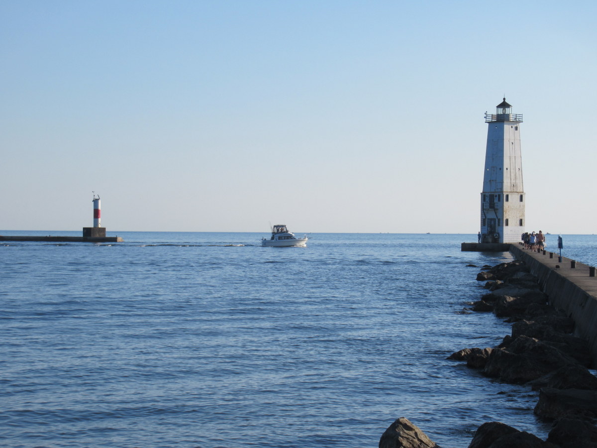 My next stop (by this time heading for evening, even with the long days of northern summer) was Frankfort. There was a river coming into the lake, and each side had a breakwater leading out to a light station: